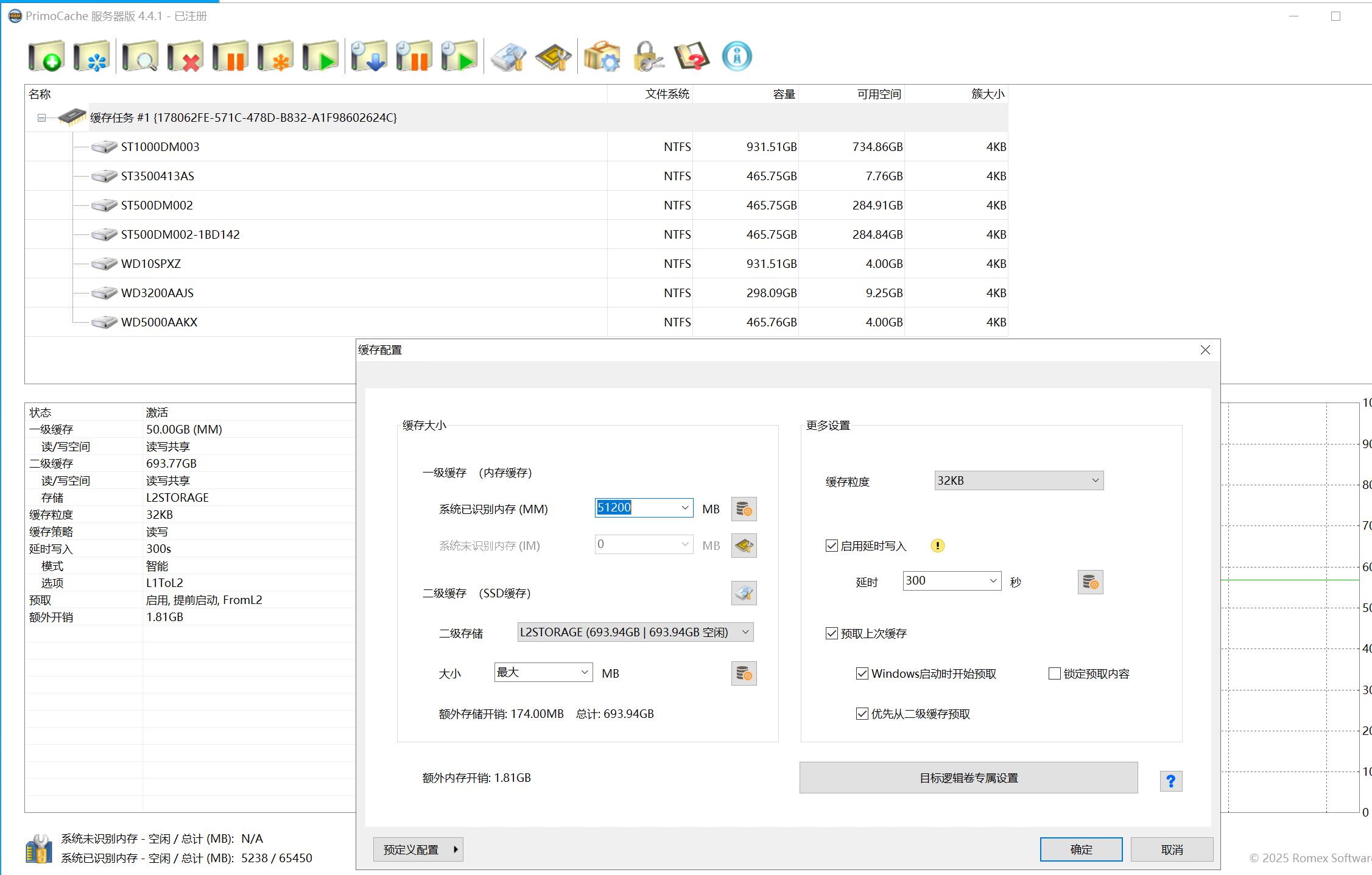 2、SSD 缓存我没找到能不能系统盘分区,直接不折腾,PrimoCache 点点就行